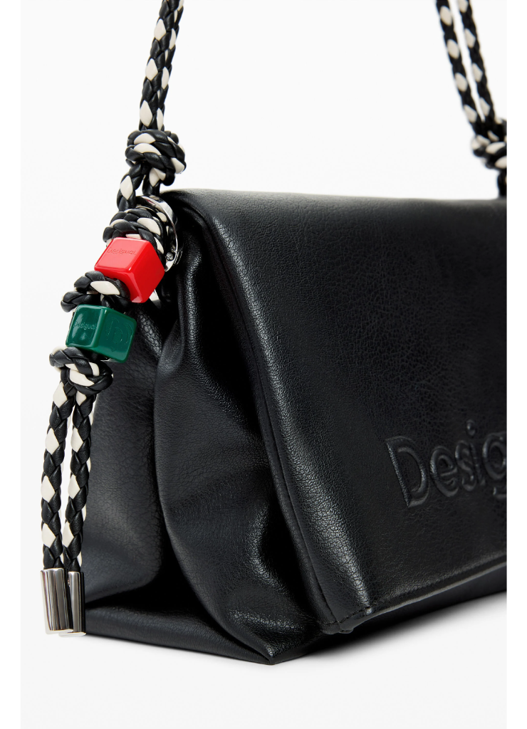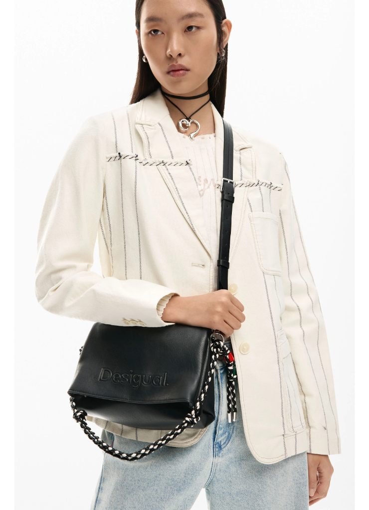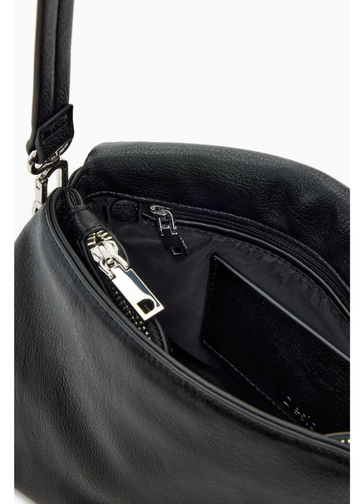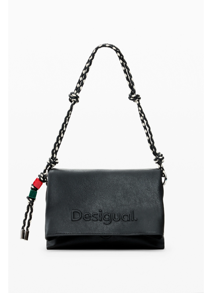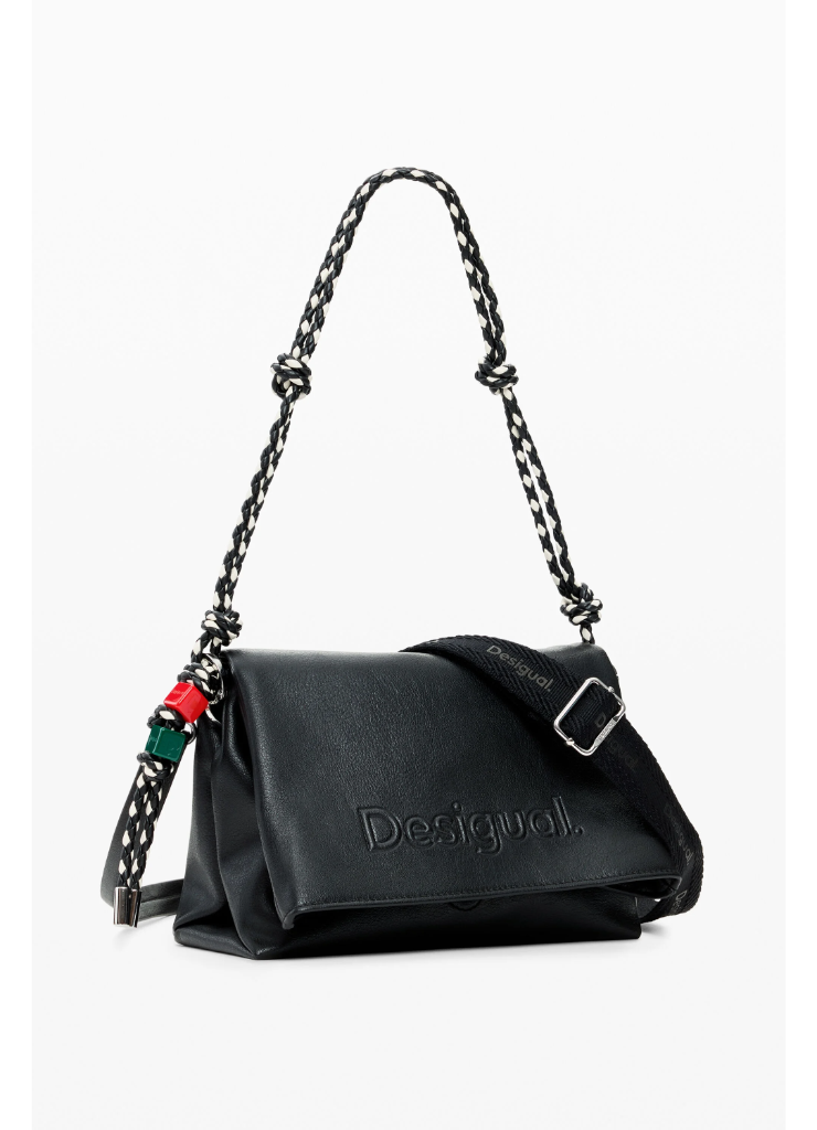 Μεσαία τσάντα με εφέ δέρματος με καπάκι, εναλλάξιμα λουριά, ανάγλυφο λογότυπο Desigual στην ίδια απόχρωση και charms με αποσπώμενη καρτοθήκη.