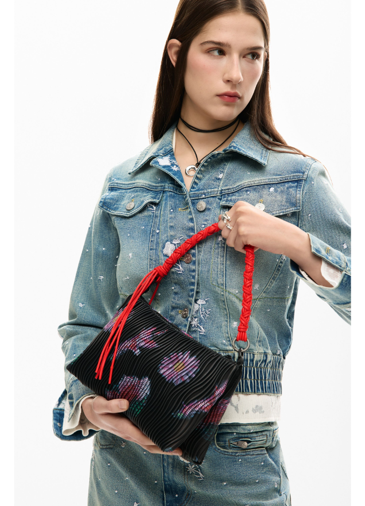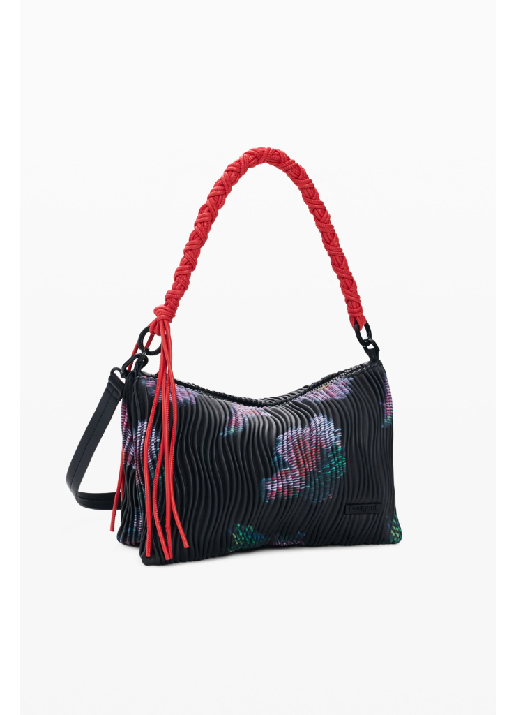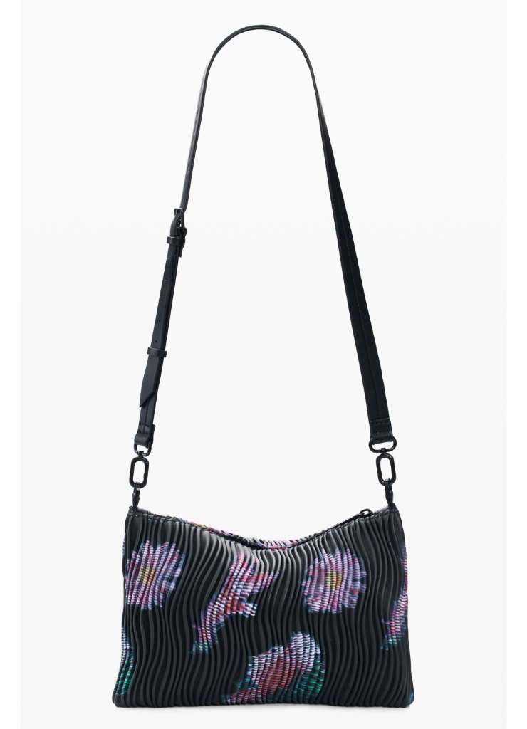 Μεσαία τσάντα με ορθογώνιο σχήμα, εναλλάξιμους ιμάντες, ανάγλυφη υφή δερματίνης και αφηρημένο φλοράλ μοτίβο