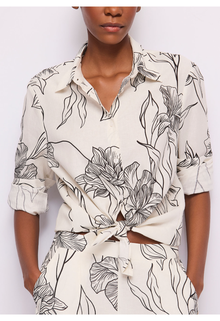 Επιλέξτε το πουκάμισο  με φλοράλ τύπωμα και μακριά μανίκια. Για μια φρέσκια και χαλαρή κομψότητα.