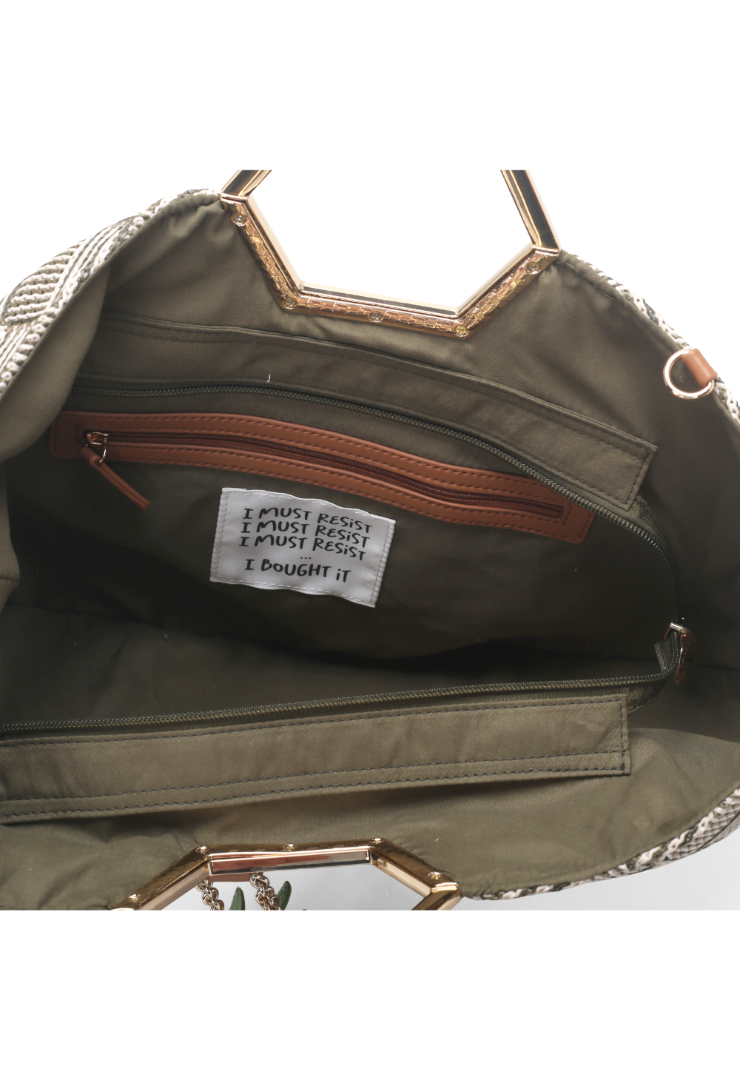 Επίπεδη τσάντα σε σχήμα μισοφέγγαρου με μεταλλικό χερούλι