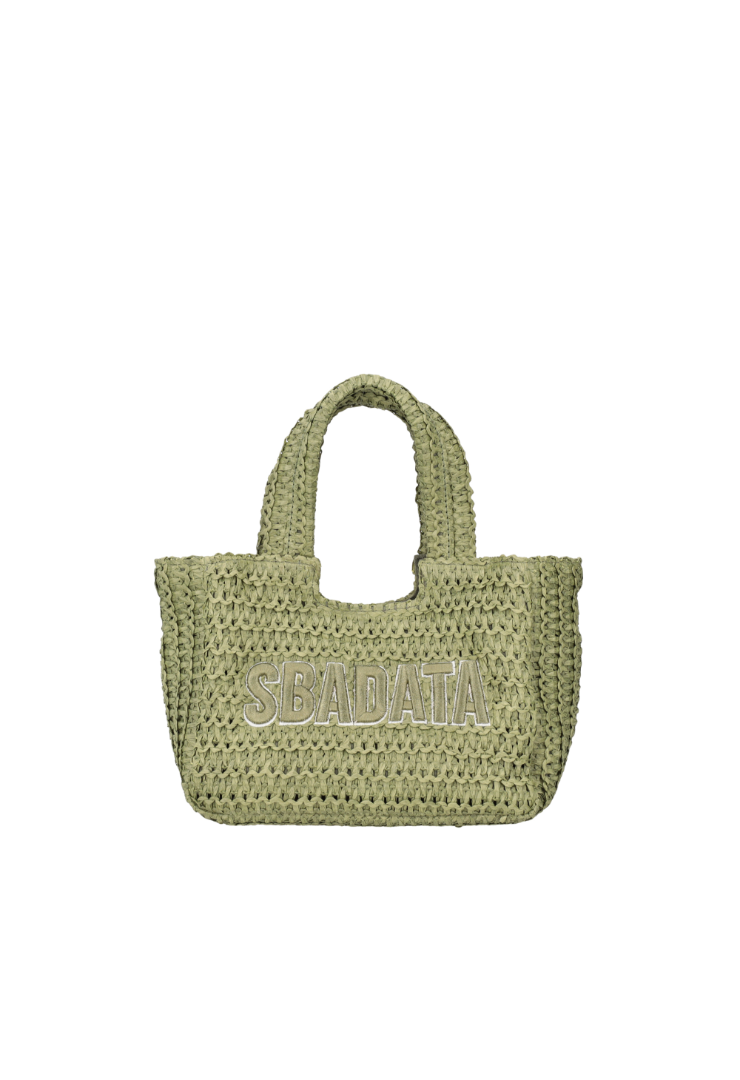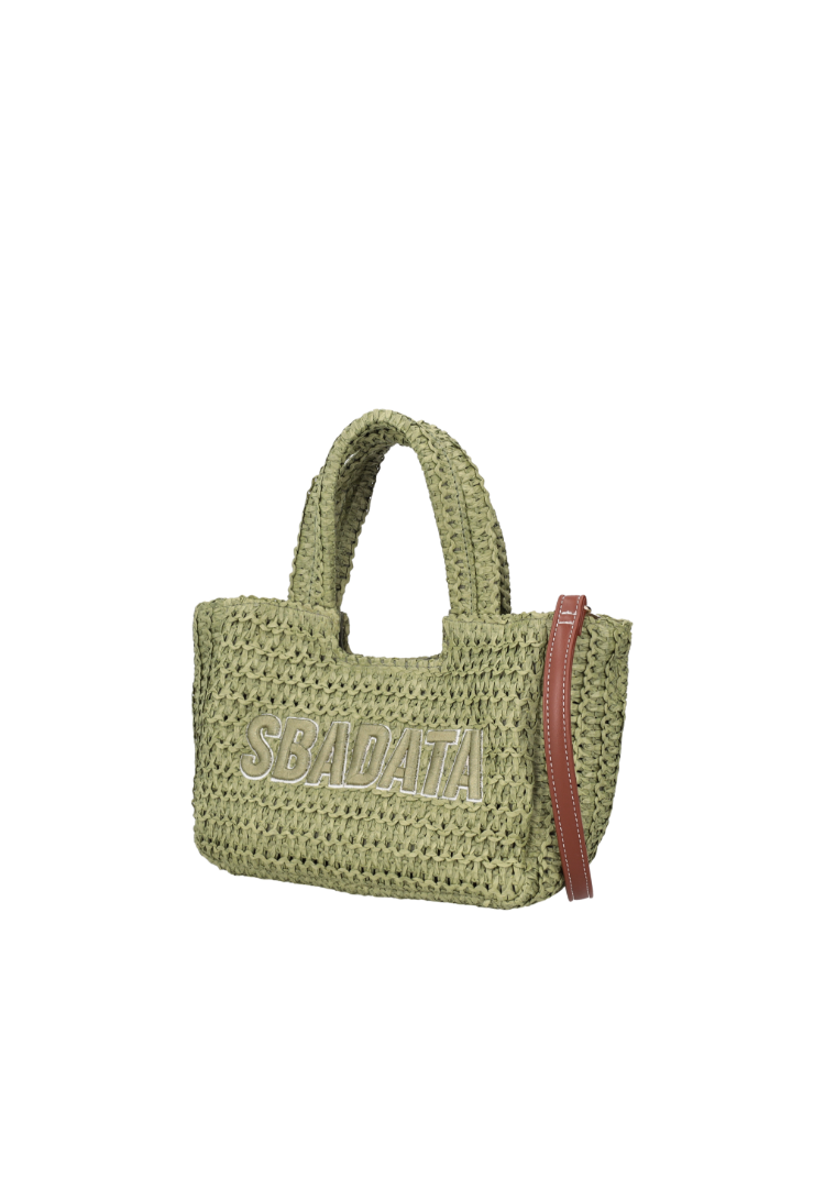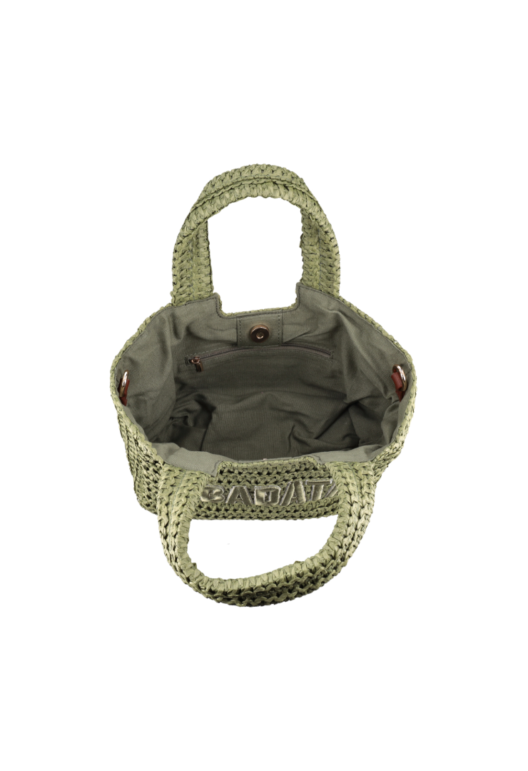 LE PANDORINE – Soley small raffia handbag with military green lettering
