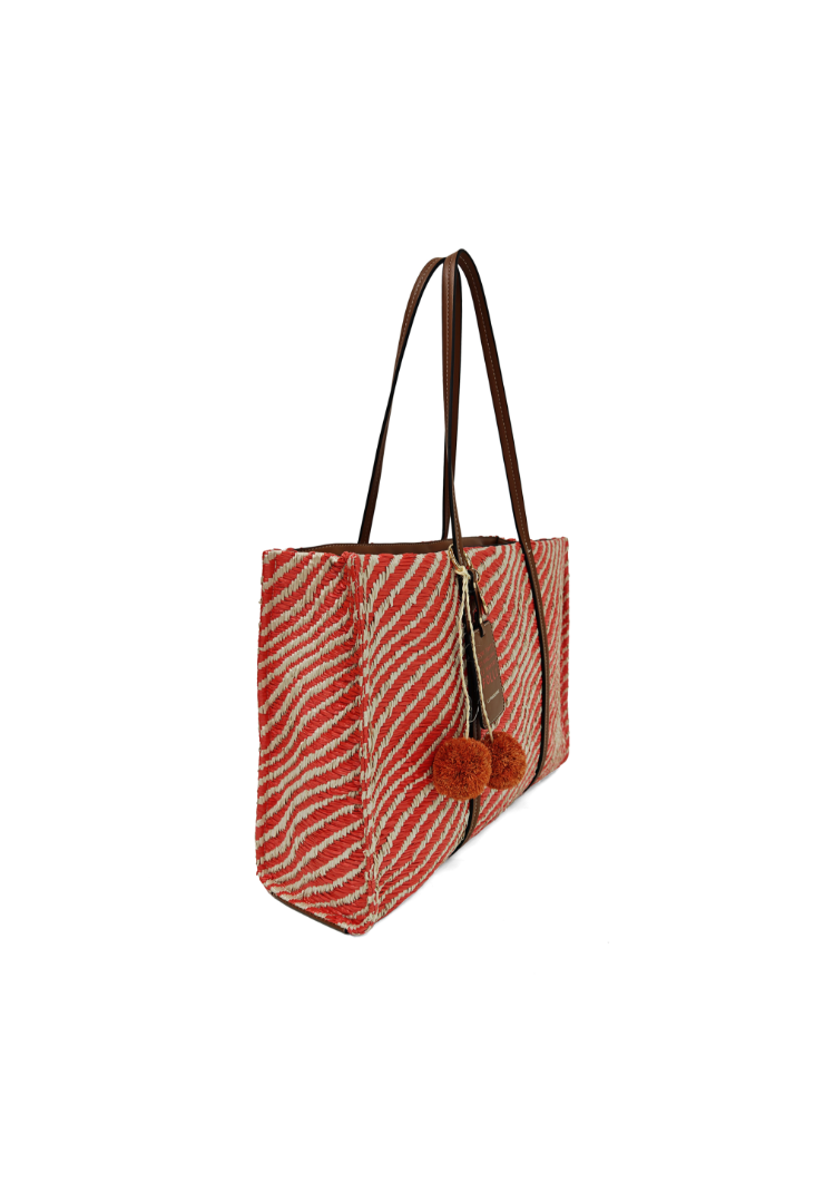 Τσάντα shopper από ύφασμα με εφέ ψάθας