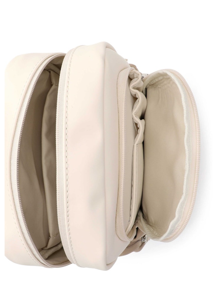 Εξωτερικά διαμερίσματα : ένα στο μπροστινό και ένα στο πίσω μέρος με φερμουάρ, μπροστά μία ανοιχτή θήκη δύο πλαινές